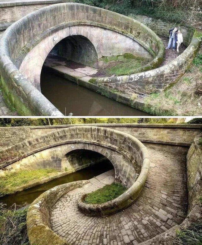 3. Міст, що звивається через канал Маклсфілд в Естбері, Англія