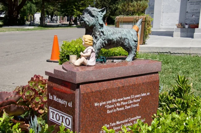 До того як Тото був увічнений як «маленький песик Дороті», тер'єр (до речі, це була дівчинка) виріс і жив на ранчо голлівудського дресирувальника Карла Спітца в долині Сан-Фернандо в 1930-х роках. Там Тото і був похований після його смерті у 1945 році. Але через десятиліття до будинку постукала влада штату Каліфорнія з розпорядженням - будинок підлягає знесенню, включаючи місце поховання Тото.
