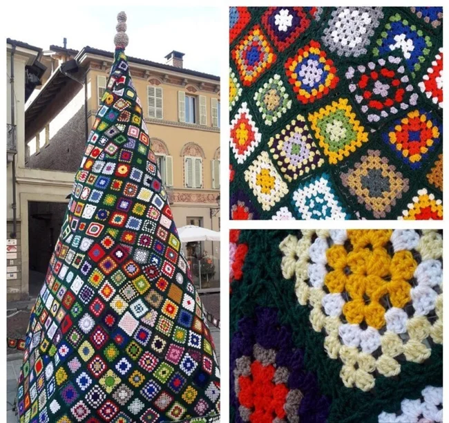 3. Група літніх жінок пов'язала ошатну та незвичайну ялинку для міста