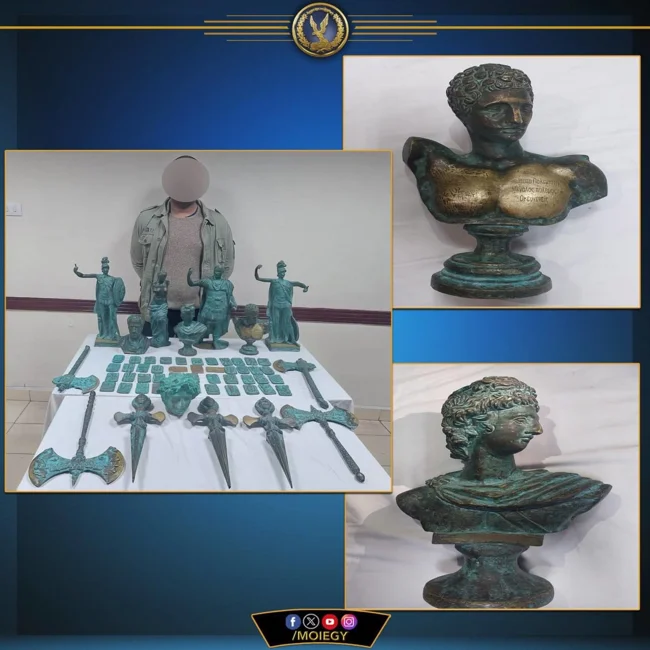 Фотографії вилучених цінностей опублікувало у соціальних мережах Міністерство внутрішніх справ Єгипту. Воно ж повідомило з посиланням на експертів, що виявлені предмети датуються періодом із 500 року до нашої ери до 400 року нашої ери.