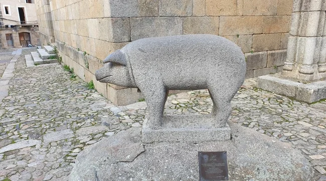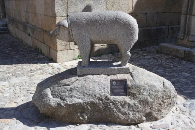 Середньовічна традиція общинного утримання свиней удостоєна цієї гарної гранітної скульптури.