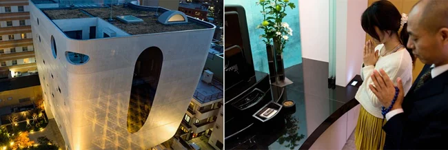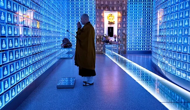 У Китаї порох померлих нерідко зберігають у колумбаріях. Це зручно та дуже вигідно з урахуванням цін на землю на цвинтарі. Китайці часто купують квартири як інвестиції. А щоб нерухомість дарма не простоювала, її стали перетворювати на усипальниці, або, як їх делікатно називають, «попелясті ділянки».