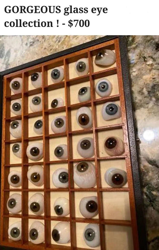Онлайн-майданчики відкрили для нас новий спосіб придбати практично будь-які товари. Від побутових приладів до автомобілів все це можна купити, не виходячи з дому. І хоча тут багато цікавих пропозицій, є і такі, що викликають страх. Навіщо комусь зберігати чи намагатися продати такі речі, як колекція людських зубів, моторошні ляльки та декор, що нагадує «демонів сонного паралічу»? Ми знайшли найбільш трешові предмети, виставлені на продаж.