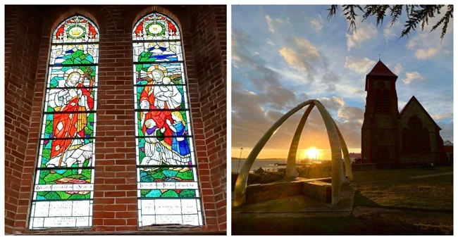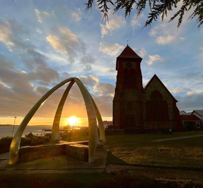 В 1933 перед церквою була встановлена арка з гігантських щелепних кісток двох синіх китів, щоб відзначити століття британського правління. Британці заявили про свої права на цю територію у 1785 році, незважаючи на те, що роком раніше на неї претендували французи. Потім Іспанія викупила її у французів і виселила британців, вирішивши, що більше подобається нинішня Аргентина.