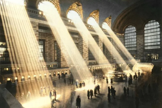 Центральний вокзал, Нью-Йорк, 1929 рік. Зробити таку фотографію більше неможливо, оскільки хмарочоси зовні блокують сонячне проміння. Архітектори намагалися, розраховували, проектували, щоб гарно було...
