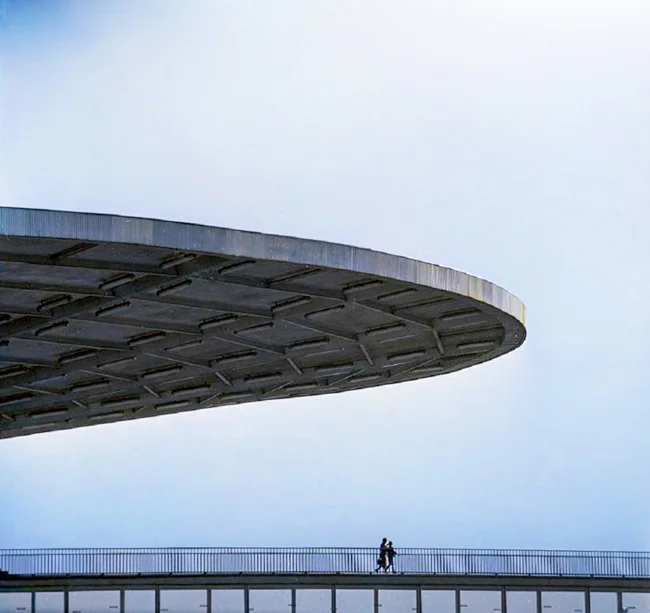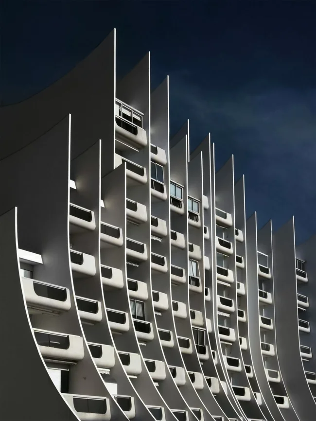 Будівля у вигляді хвилі "L'immeuble En Vague" у Бретані, Франція, 1970-ті. Спроектовано архітектором П'єром Дусе. ![]()