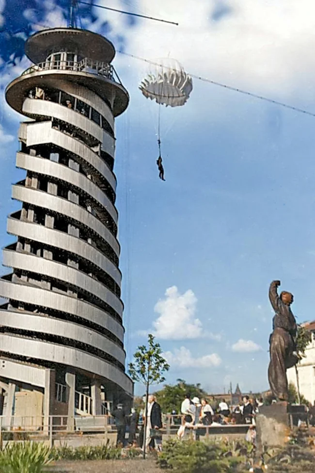 Парашютна вишка в ЦПКіВ імені Горького. Москва, 1939 рік.