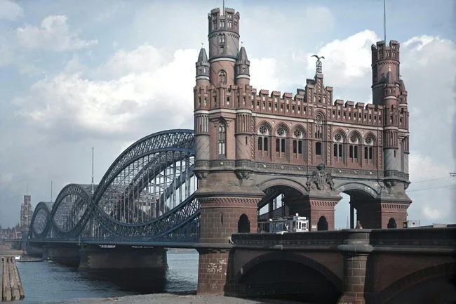 Спочатку Новий Ельбрюкке був прикрашений двома вежами в неоготичному стилі, перш ніж вони були зруйновані під час розширення моста в 1959 році. Зараз від красивого мосту практично нічого не залишилося і виглядає він дуже похмуро.