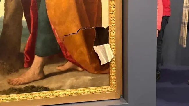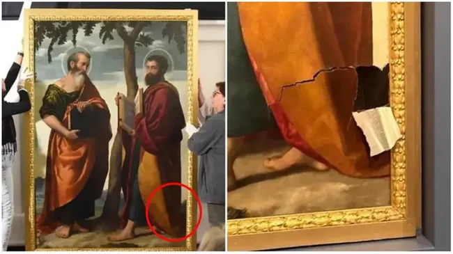 В Італії відвідувачка музею спіткнулася та порвала картину XVI століття (3 фото)