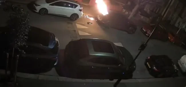 За кілька миттєвостей вандал облив авто невідомою займистою рідиною і намагався підпалити авто. Але відразу після спалаху стався великий спалах і звук, схожий на вибух, після чого вогонь перекинувся на горе-злочинця.