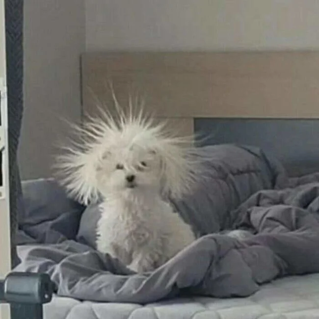 8. Наш пес активно грав на дивані, і його шерсть сильно наелектризувалась
