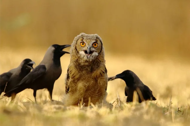 Ворони і сови ненавидять один одного та інстинктивно нападають один на одного на місці, навіть якщо до цього вони не стикалися.