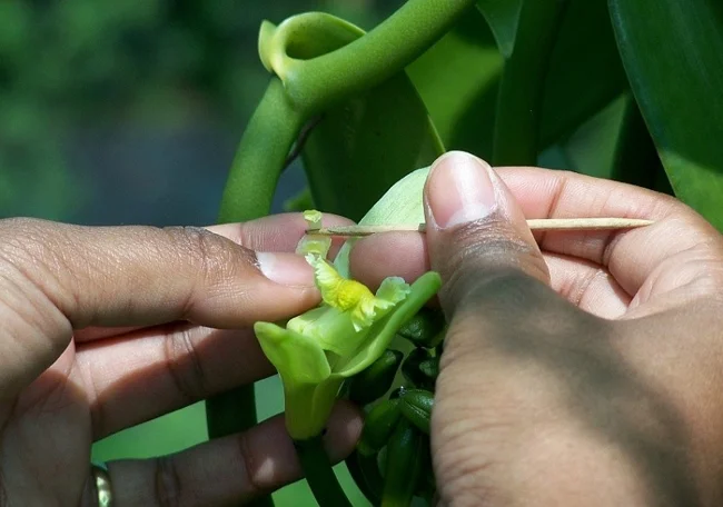 Квіти ванілі розкриваються лише один раз на 2-3 години та вимагають ручного запилення для отримання бобів. У природі ваніль запилюється бджолами-меліпонами (meliponite) - безжальними бджолами, що живуть у тропічних лісах Азії, Африки та Південної Америки. Спосіб ручного запилення придумав хлопчик-раб Едмон Альбіус у 1841 році.