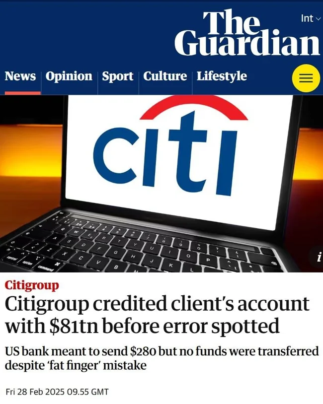Для розуміння масштабу 81 трильйон доларів це вдвічі більше, ніж весь держборг США. Природно, транзакцію поспішно скасували, хоча могли й не поспішати, все одно банк таких грошей не має. І ніколи не було. А з такими співробітниками ніколи не буде.