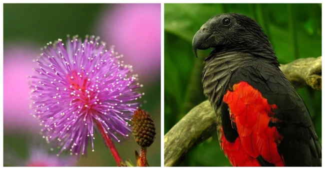 Ці скромні рожеві суцвіття належать мимозі сором'язливій. Свою назву вона отримала через те, що при дотику до листя вони починають згортатися. А ті яскраві жовті суцвіття, які називають мімозою та дарують жінкам на 8 Березня, належать акації сріблястої з підродини Мімозових.