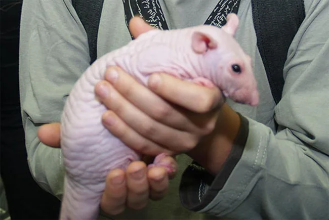 Примітно, що гіганти частіше зустрічаються серед щурів лисих, а не серед традиційно-вовняних. У лисих, мабуть, є якісь додаткові відхилення в організмі (крім втраченого шерстного покриву), що дозволяють їм набирати солідні розміри та вагу.
