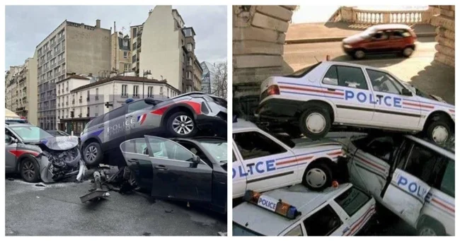 Зіткнення трьох автомобілів, два з яких – поліцейських, сталося днями в Парижі. Під час гонитви за викраденим автомобілем у транспортний засіб врізалася поліцейська машина, в яку врізалася ще одна машина поліції.