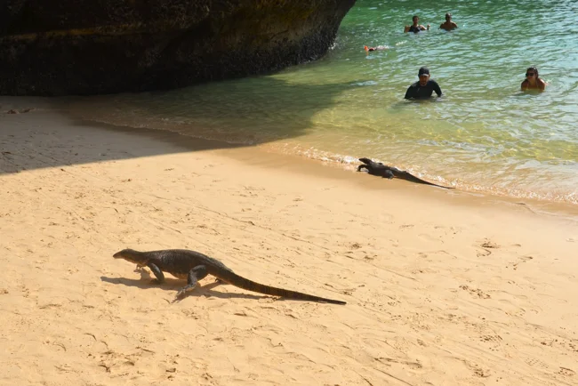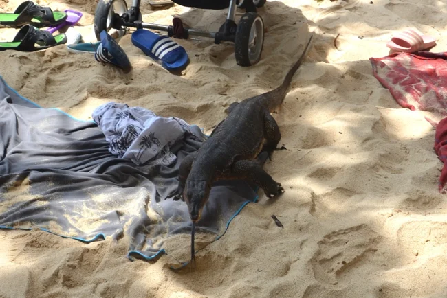 Інша річ, що комодські варани - справжні гіганти, що виростають до 4 метрів у довжину, а на тому пляжі в провінції Крабі мешкають невеликі ящірки всього метри по півтора разом із хвостом.