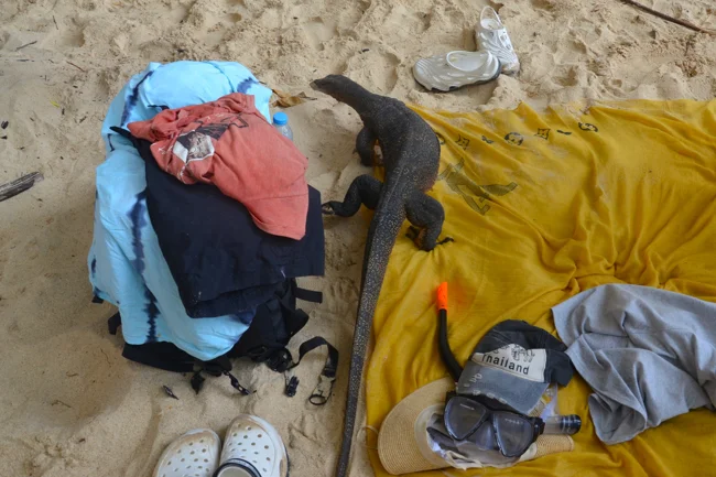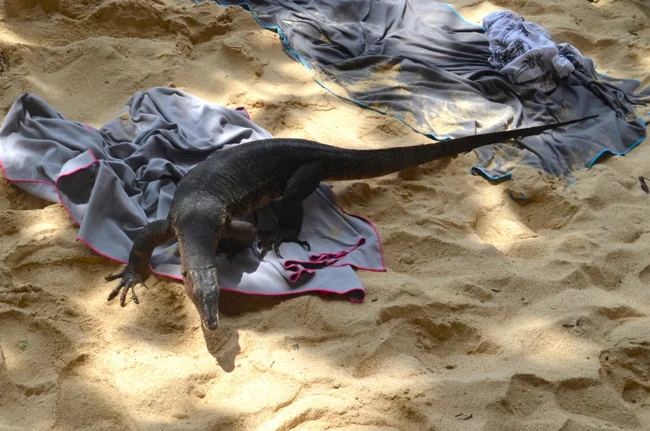 Чесно кажучи, я завжди раніше думав, що варани водяться лише на острові Комодо в Індонезії. І раптом на багатолюдному пляжі в провінції Крабі – ось вони, красені, повзають серед людей та нікого не бояться.
