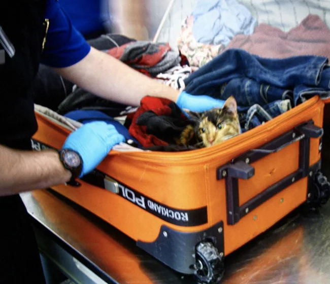 Нелегальний кіт у валізі – власник багажу заявив, що не знає його