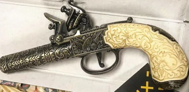 Старовинний кремнієвий пістоль, точніше, його сучасна копія — все ж таки зброя. Просто так провозити не можна.