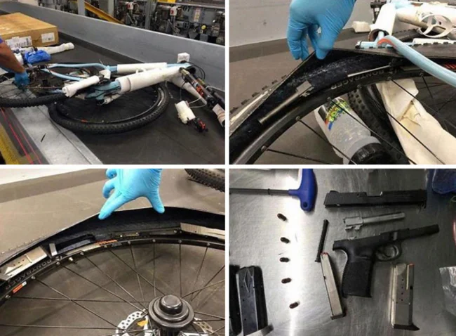 Розібраний пістолет акуратно приховали всередині шин велосипеда