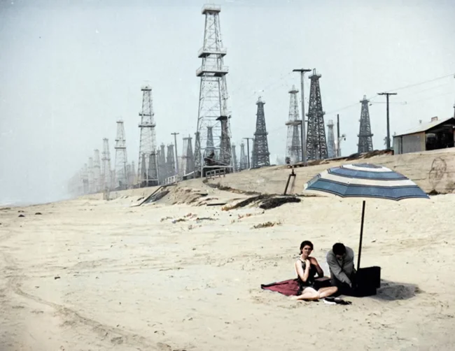 Нафтові вежі на пляжі в Каліфорнії, 1920-х років.