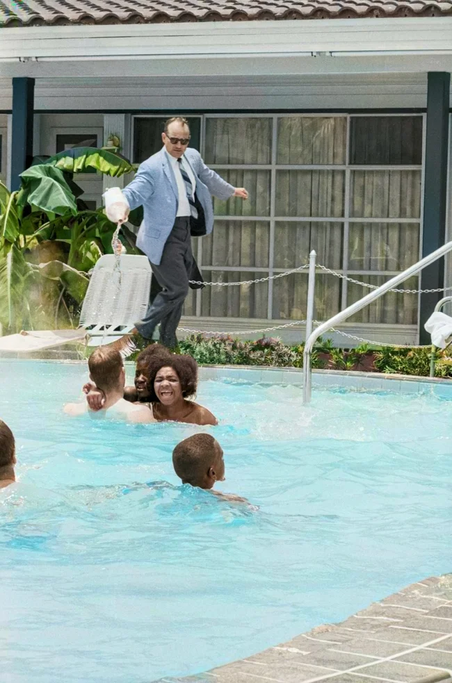 Власник мотелю Джеймс Брок виливає соляну кислоту в басейн, щоб визволити непроханих гостей, 1964 рік.
