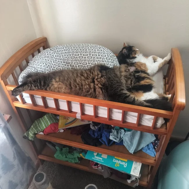 14. У нас скоро буде дитина, кішки вирішили, що це ліжко для них