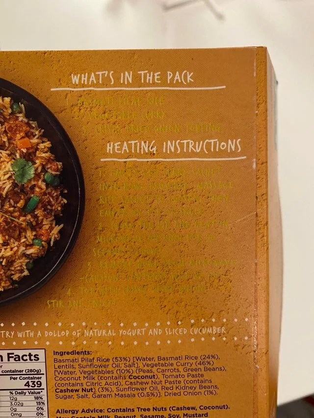 Намагався правильно розігріти страву, але просто не зміг розглянути жовтий текст на коричневому тлі