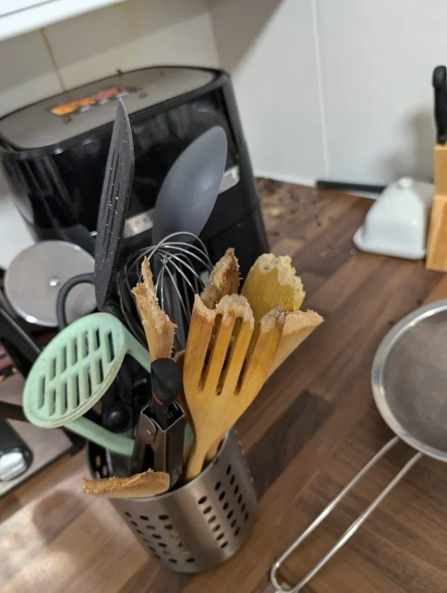 14. Автор знімку поскаржився, що його батько використовує кухонну лопатку замість йоржика