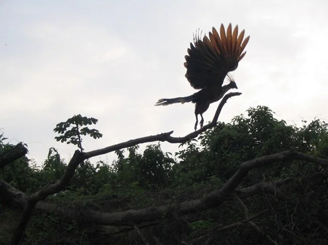 До речі, так виглядає дорослий гоацин. Птахи реально нагадують пізніх оперених динозаврів.