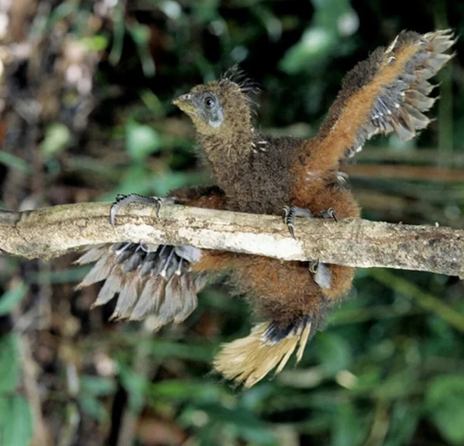 На перший погляд, у них все як у звичайних пташок. Сидять собі в яйці, інкубуються місяць, потім вилуплюються у вигляді стандартних лисих пташенят з одним невеликим приколом – у них є пазурі на крилах! Ага, як у тих пташиних динозаврів типу знаменитого археоптерикса.
