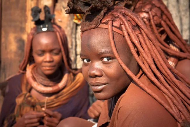 У народу хімба в Намібії є унікальна традиція: жінки покривають шкіру та волосся сумішшю з червоної глини, жиру та ароматичних трав. Цей «червоний» стиль не лише захищає від сонця та комах, а й вважається символом краси та культурної ідентичності. До речі, миття волосся – велика рідкість, адже його «стиль» підтримується роками.