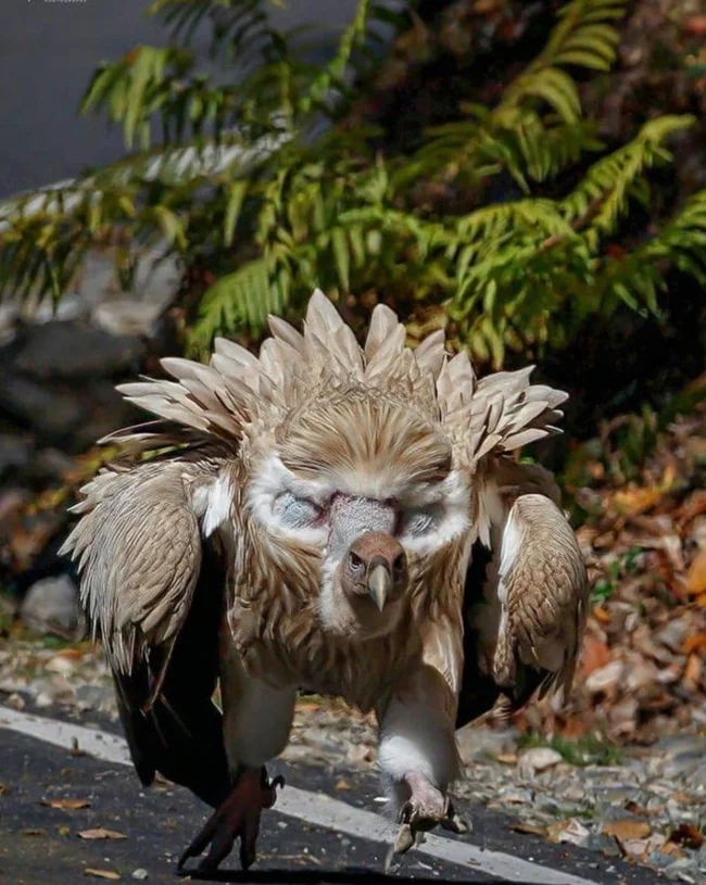 Не відразу побачиш, де голова у цього снігового грифа, що біжить, знає. Не дивно, що він виглядає дуже загрозливо
