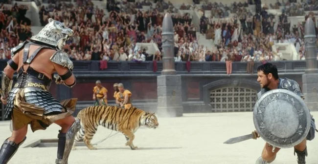 Рассел Кроу у сцені з фільму «Гладіатор»
