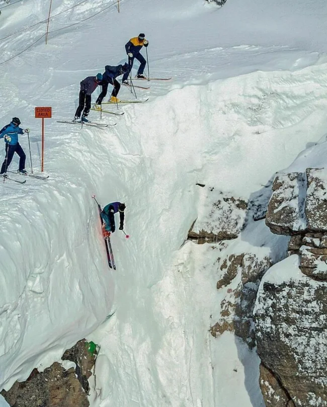 Приклад спуску практично вертикальним кулуаром від гірськолижника Даг Кумбс, автор фото Джексон Хоул, Вайомінг, 1989-й