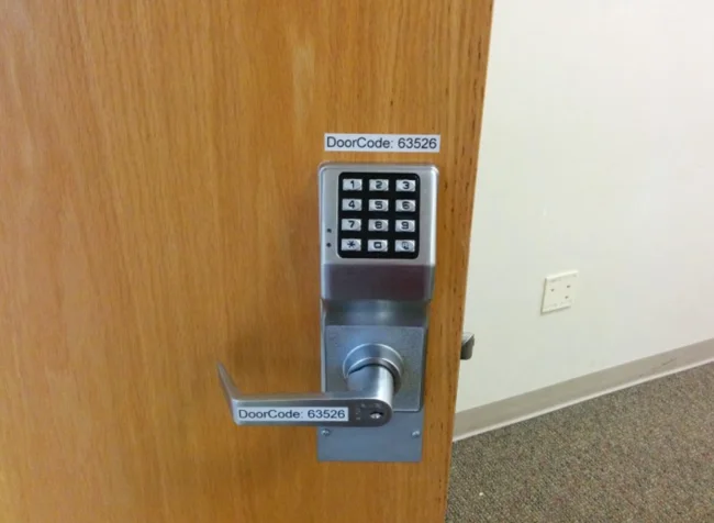 Щоб не забути код, господар вирішив продублювати його на дверях і на дверній ручці.