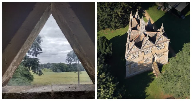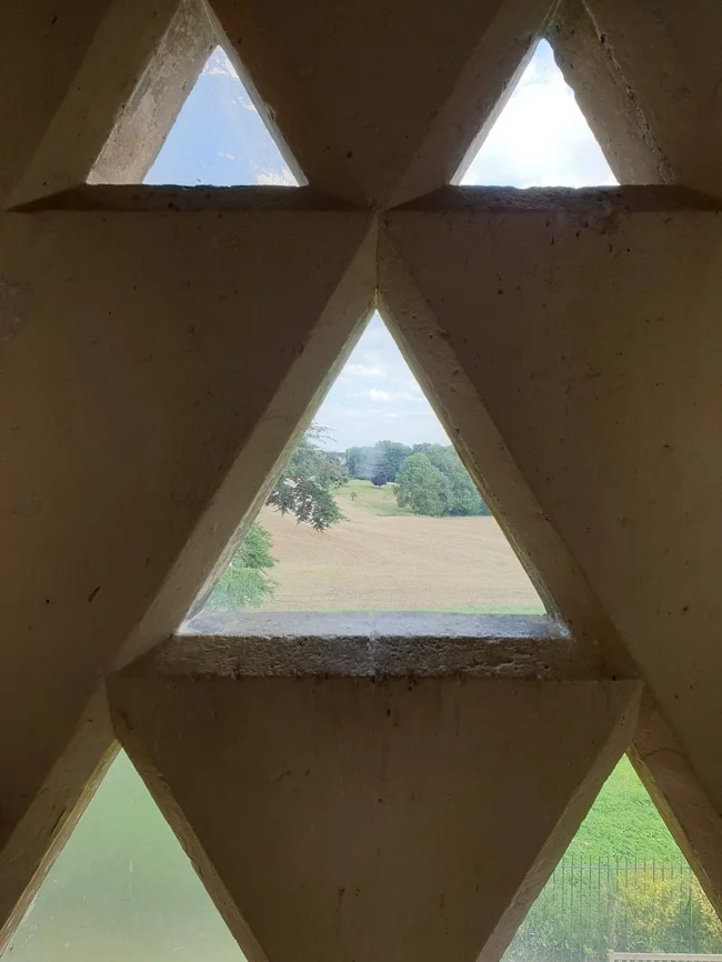 Кожна деталь тут відсилає до Святої Трійці та католицької меси. На трьох стінах — по три вікна на кожному з трьох поверхів, три фронтони і навіть трикутна труба, прикрашена трилисниками — фамільним символом Трешамов.