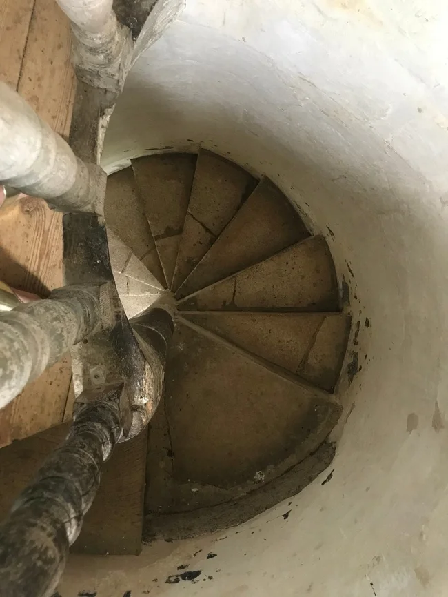 Усередині будинок поділено на три шестикутні кімнати (по одній на поверх), а кутові простори утворюють трикутники. В одному з них гвинтові сходи, а два інших служать крихітними кімнатками.
