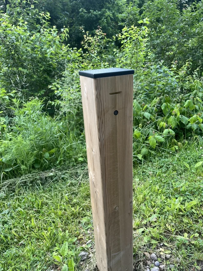 7. Високий дерев'яний стовпчик на велосипедній доріжці