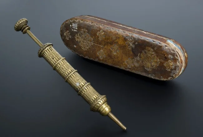 Латунний шприц з футляром - само собою, багаторазовий, 1601-1630-ті