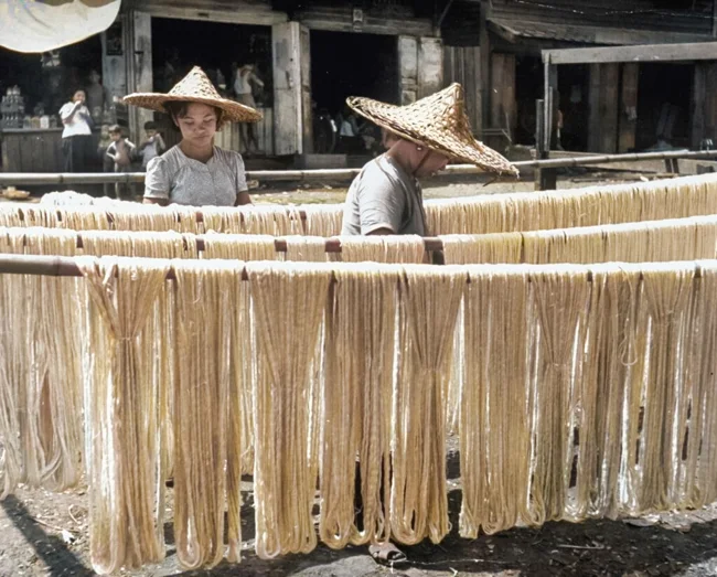 Китайські барвники розвішують бавовняні тканини у дворах Бангкок, 1950 рік.