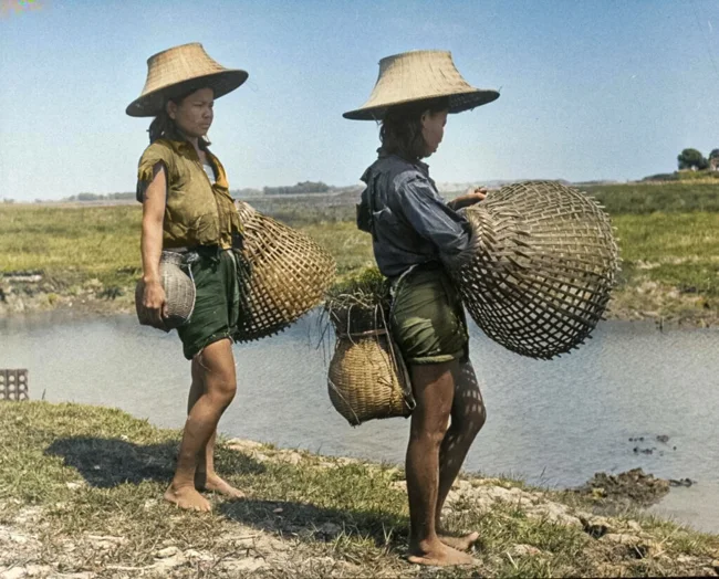 Фермерські дівчата ловлять рибу в каналі поблизу Бангкока, 1950 рік.