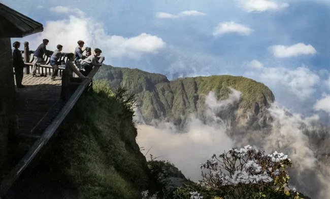 Вид на гори з монастиря сплячих хмар на південному заході Китаю, Сичуань, 1962 рік.