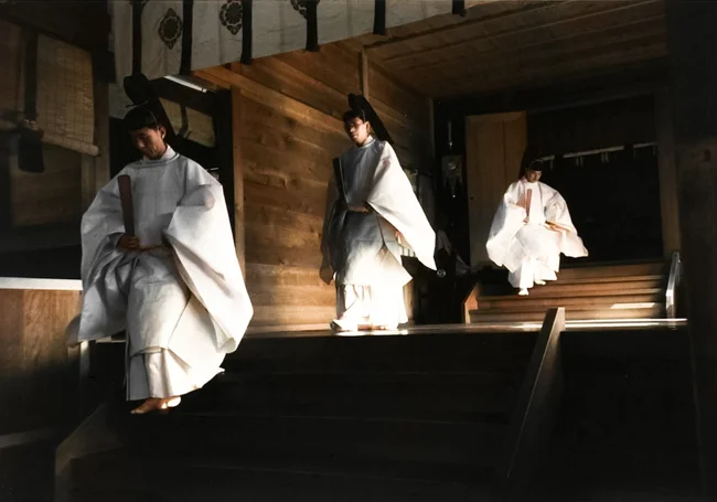 Синтоїстські священики в саду храму Мейдзі, 1951 рік.