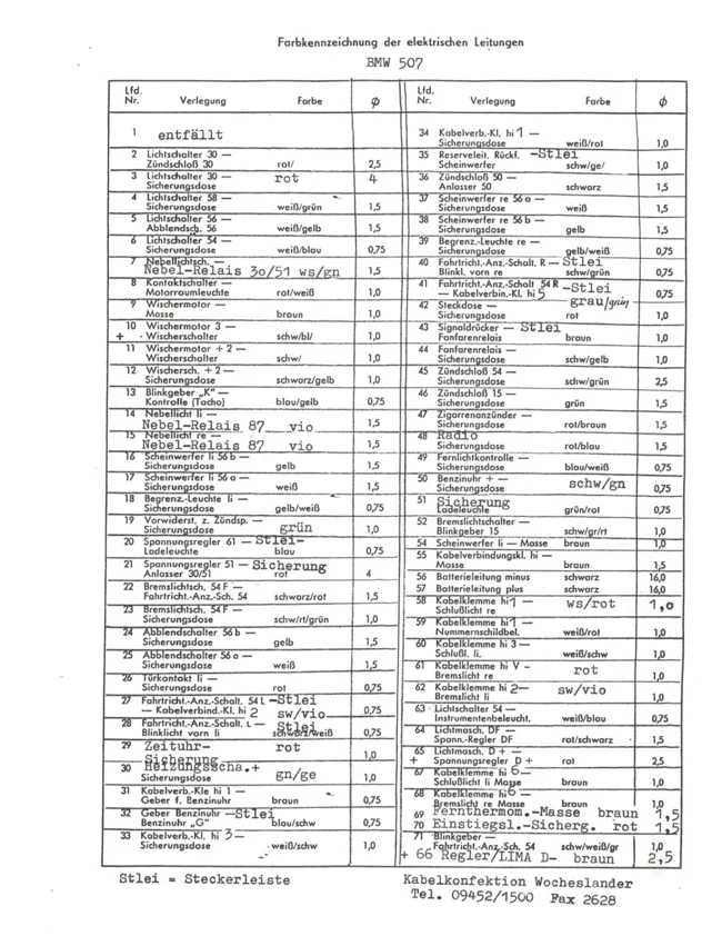 За даними аукціону, виставлений на торги екземпляр спочатку продали в Німеччині, хоча модель 507 розроблялася переважно для ринку США. Родстер був повністю відреставрований у 2012 році та в процесі робіт був переоформлений. З конвеєра автомобіль зійшов білим, але під час реставрації його перефарбували в кораловий, включаючи металеві деталі інтер'єру, і знову перетягли інтер'єр бежевою шкірою.