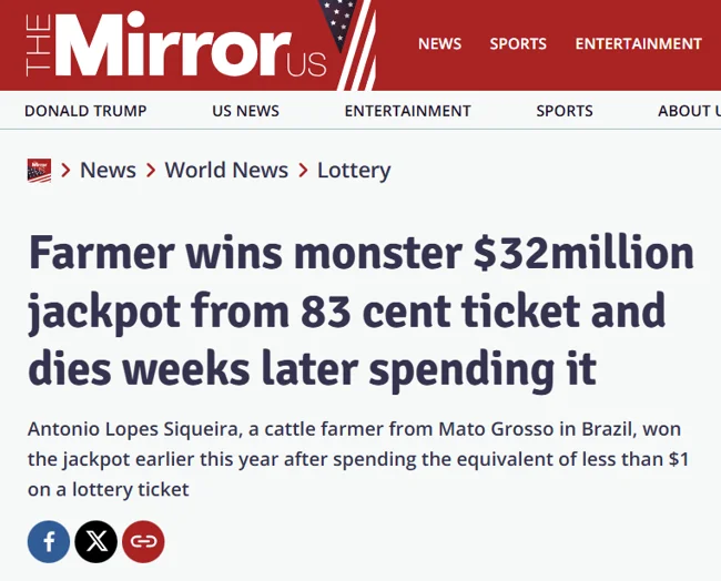 Якби ви виграли 34 млн доларів, куди ви їх витратили? 73-річний житель Бразилії, який раптово зірвав джекпот, насамперед вирішив упорядкувати зуби, і, як з'ясувалося, дарма він це вирішив.