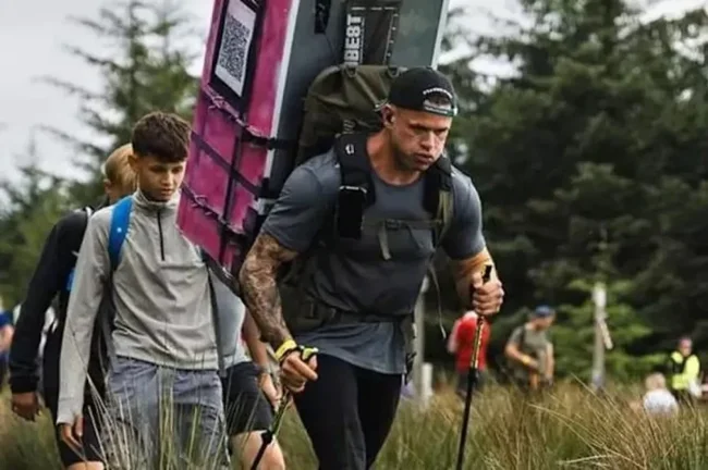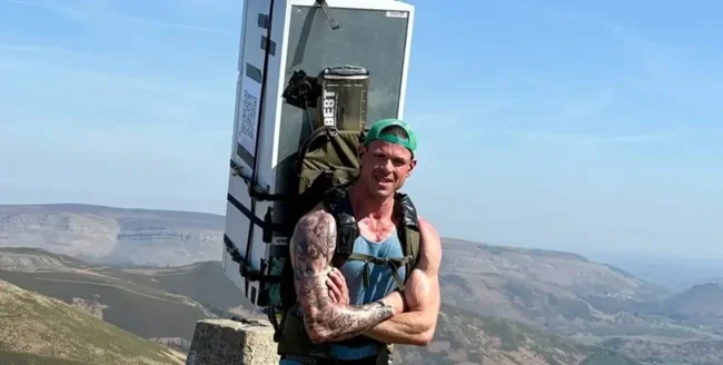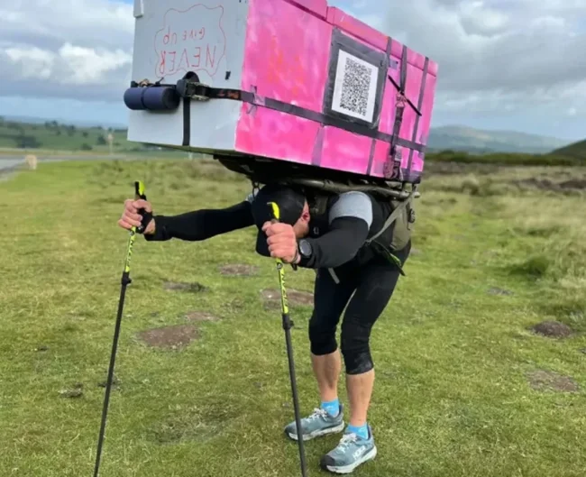 У Британії чоловік пройшов понад 100 км із холодильником на спині на згадку про свою померлу дружину (3 фото + 1 відео)