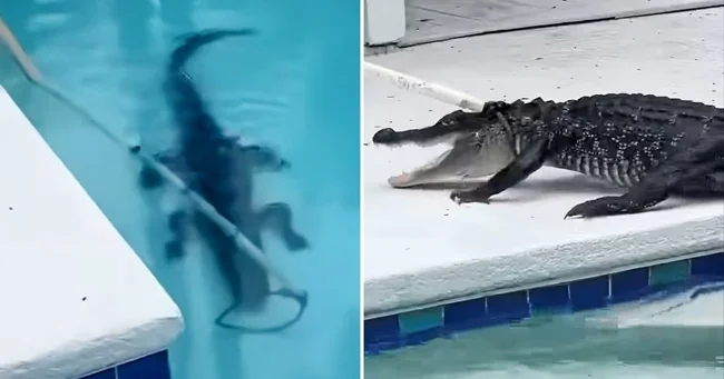 Алігатор пробрався до басейну приватного будинку у Флориді та насолоджувався водними процедурами, коли його відпочинок перервали поліцейські та професійний ловець. На кадрах, опублікованих офісом шерифа округу Мартін, хижак робить прийом, який зазвичай призначений для вбивства видобутку.